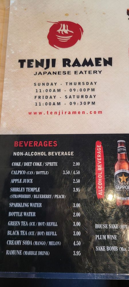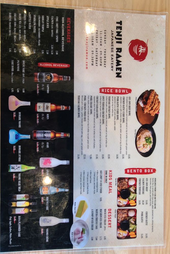 Tenji Ramen, located in Murrieta, CA, is a top-rated ramen spot that offers a variety of options for all types of diners. With a bold Japanese decor and excellent service, this gem has gained a loyal following. The Chashu Bowl is a customer favorite for its massive portion size, while the flavorful broth in the Ramen dish sets it apart. The prices are competitive, making it a great value for the quality of food and service provided. Customers rave about the friendly and quick staff, as well as the fresh and well-prepared meals. From the tasty katsu to the satisfying soup dumplings, each dish showcases Tenji Ramen's commitment to excellence. Whether you're a ramen enthusiast or just looking for a delicious meal, this restaurant is a must-visit destination in Murrieta.